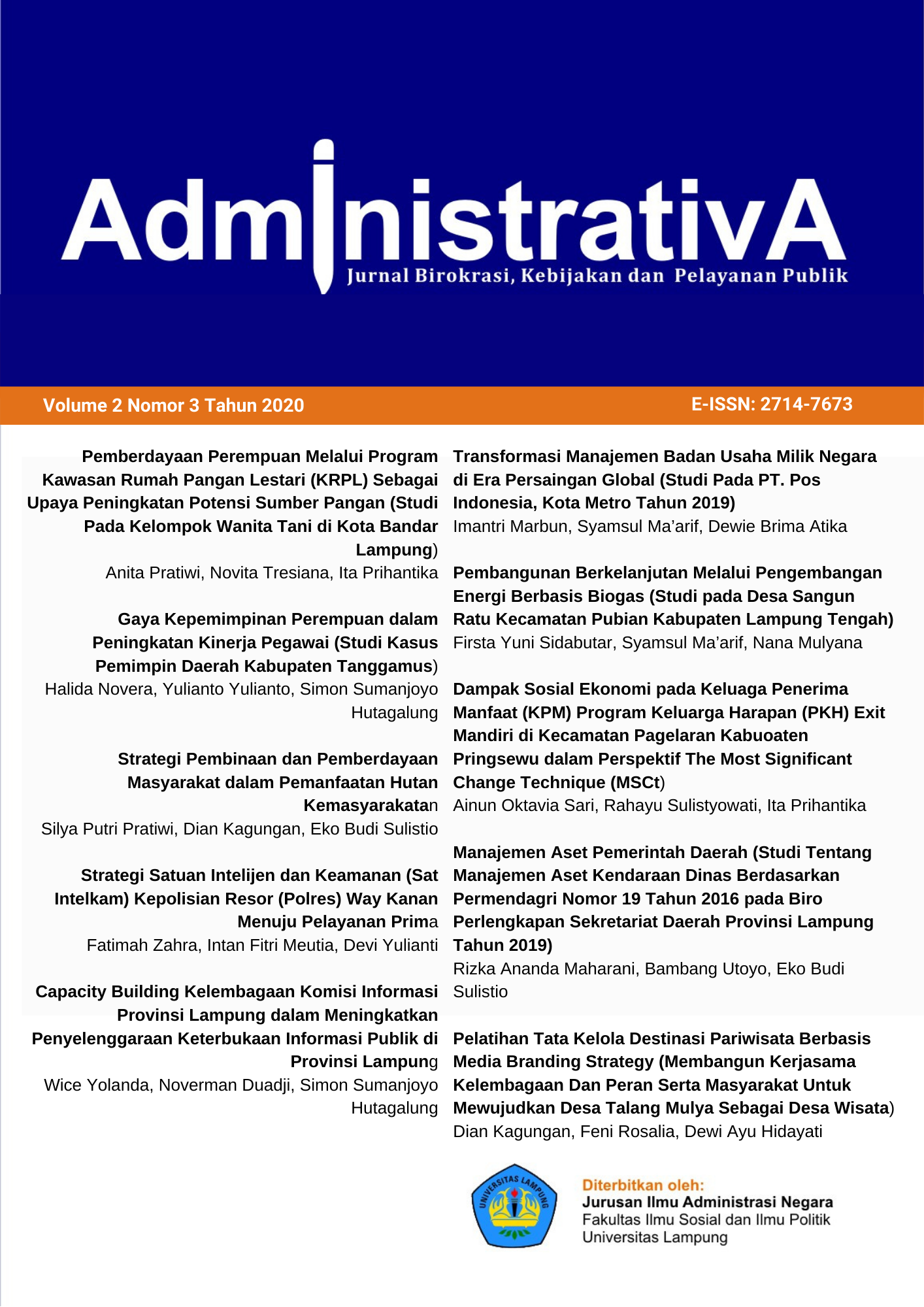 Public Administration Department, Faculty of Social and Political Science - University of Lampung.