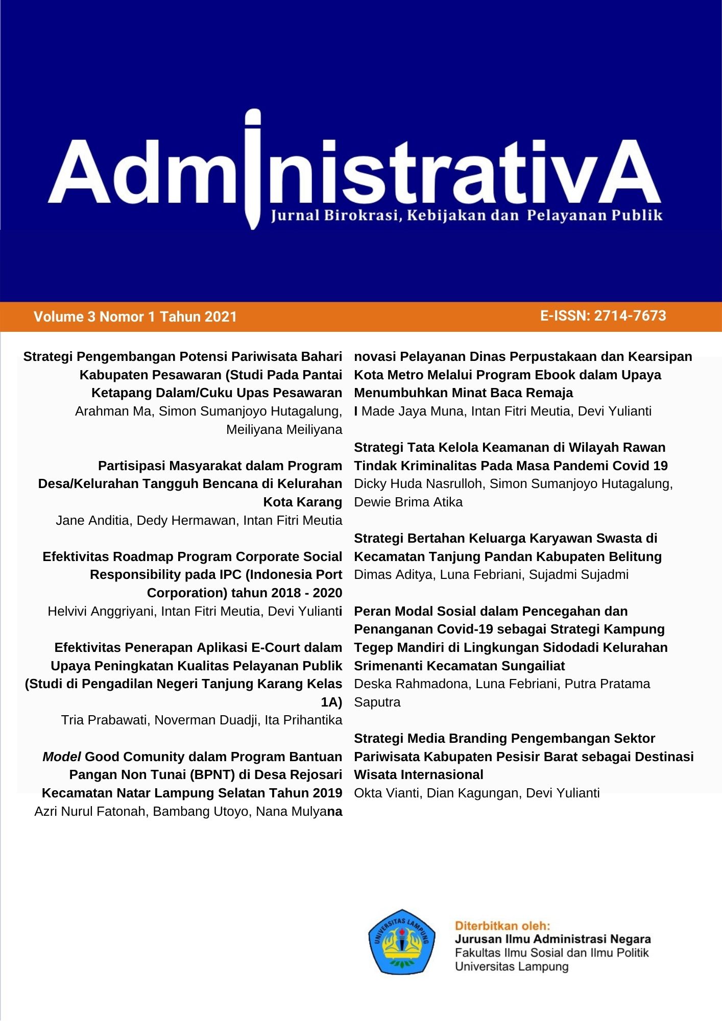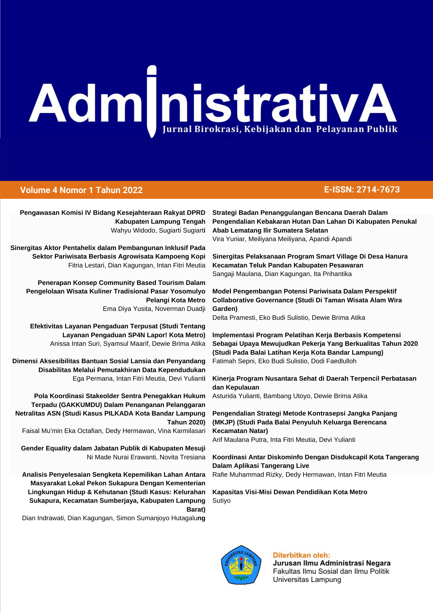 Public Administration Department, Faculty of Social and Political Science - University of Lampung.